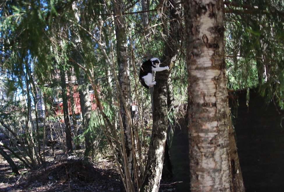 Hos Kasper finns en massa våryra bilder på katter och hund. Här vill jag bara berätta att lille Myse mår förträffligt. Nu sedan han har sin frihet tycks han uppskatta sina nya domäner än mer.