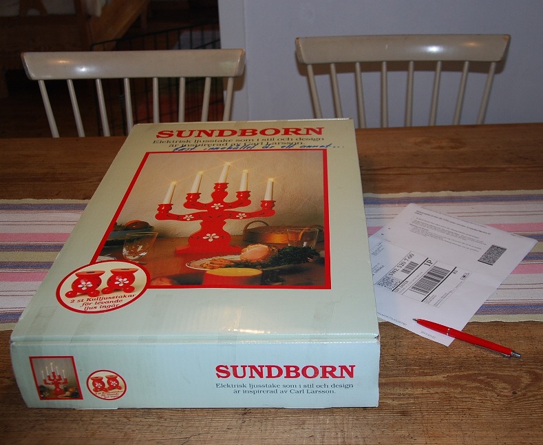 I den här kartongen ligger min laptop. Hehe, jag blev lycklig när jag hittade en stabil kartong här hemma som den faktiskt rymdes i, på alla ledder. Boden med alla gamla kartonger och emballage tömdes i våras.